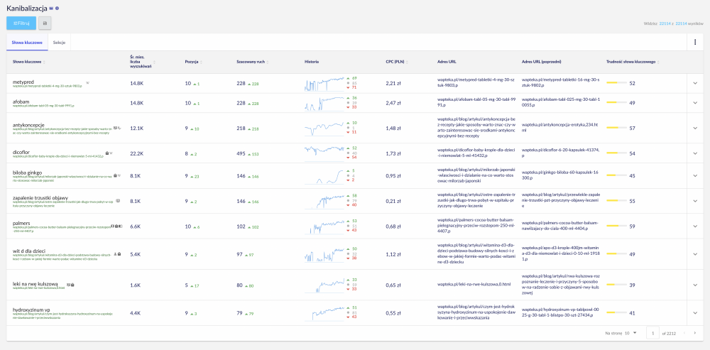 While working on wapteka.pl, we are trying to catch up with the very strong pharmaceutical competition, and it is visibility that is the most important variable for us to analyze our actions.