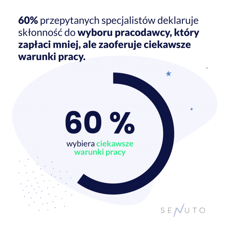 - 60% przepytanych specjalistów SEO deklaruje skłonność do wyboru pracodawcy, który zapłaci mniej, ale zaoferuje ciekawsze warunki pracy.