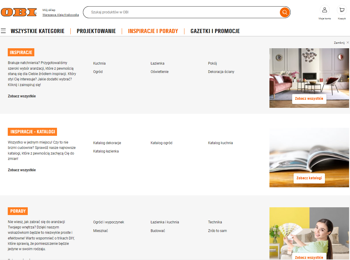 Właśnie dlatego jednym z głównych zadań, a jednocześnie problemów zespołu OBI, jest regularna publikacja pomocnej i użytecznej treści w kanale online. W przypadku branży DIY jest to o tyle istotne, że właśnie od Internetu klient rozpoczyna research potrzebnych mu produktów. To właśnie w Internecie możemy zacząć rozbudzać w nim pewne potrzeby, które będzie mógł zrealizować w sklepie.