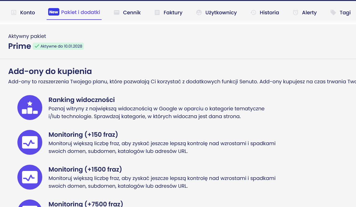 Wszystko po to, by skupić Twoją uwagę na najważniejszym co jest w Senuto, czyli na danych.