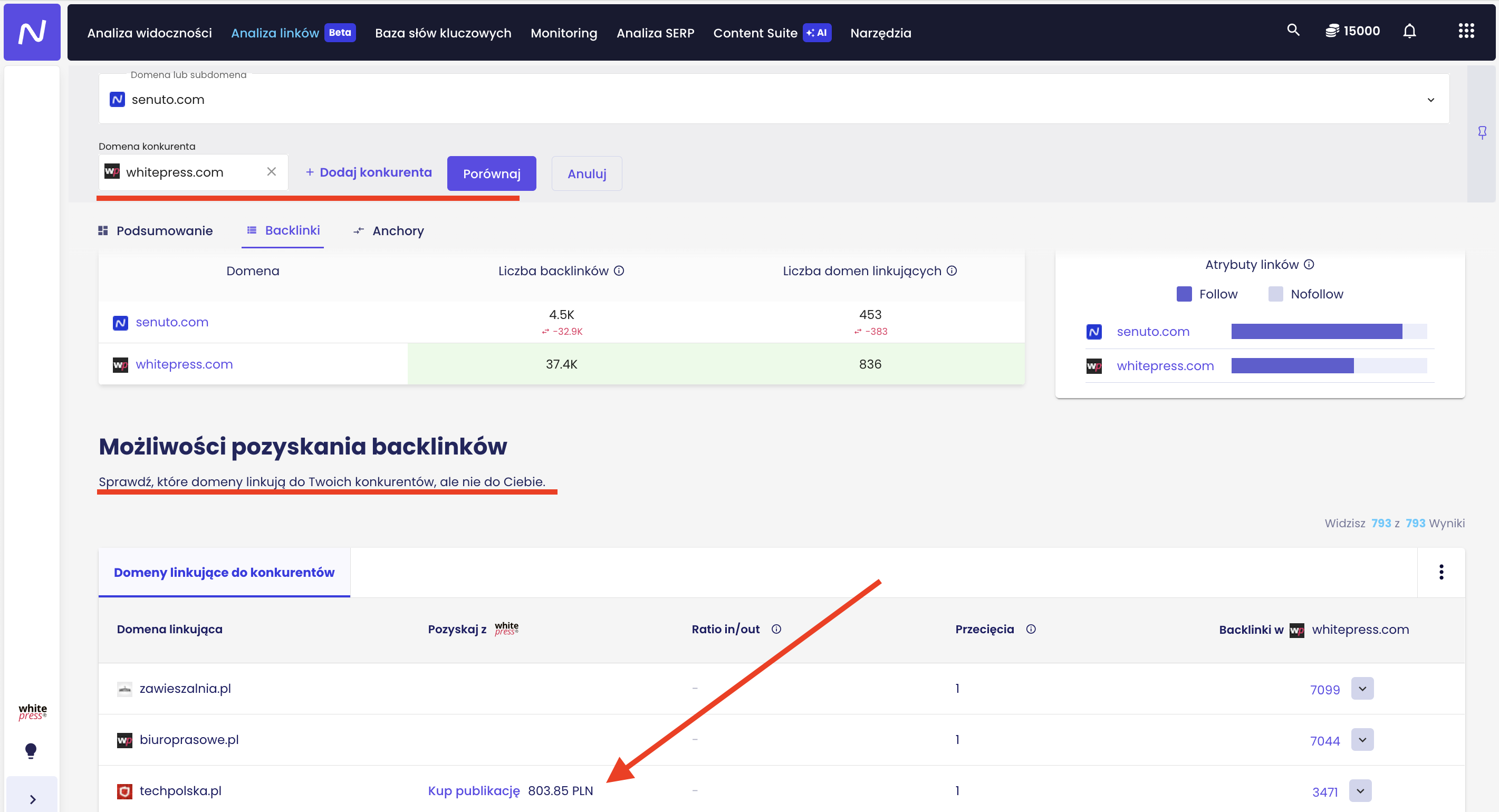 Dzięki temu już wiesz jakie nagłówki i jaką ich strukturę stosuje konkurencja oraz jakie linki umieścili w swojej treści. Warto się zainspirować tymi informacjami podczas tworzenia własnego contentu!